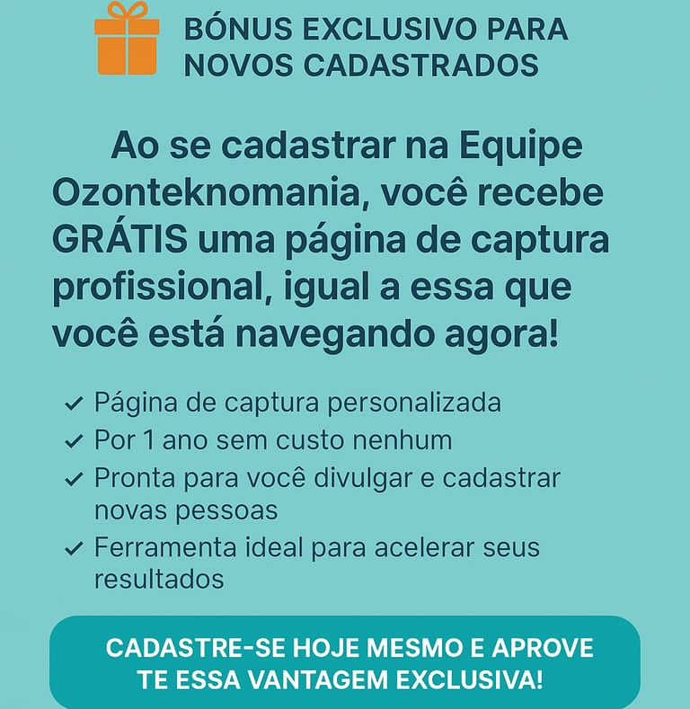 Uma das maiores vantagens de ser consultor Ozonteck é a chance de consumir produtos de altíssima qualidade com 50% de desconto. Além da economia, você também terá a sua disposição especialista e lives que tirarão todas as suas dúvidas, fazendo com que você possa extrair o que precisa da melhor forma e com os melhores produtos.